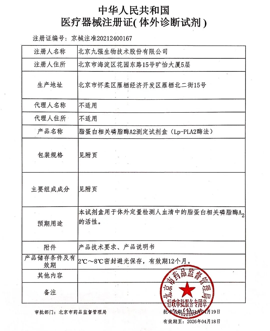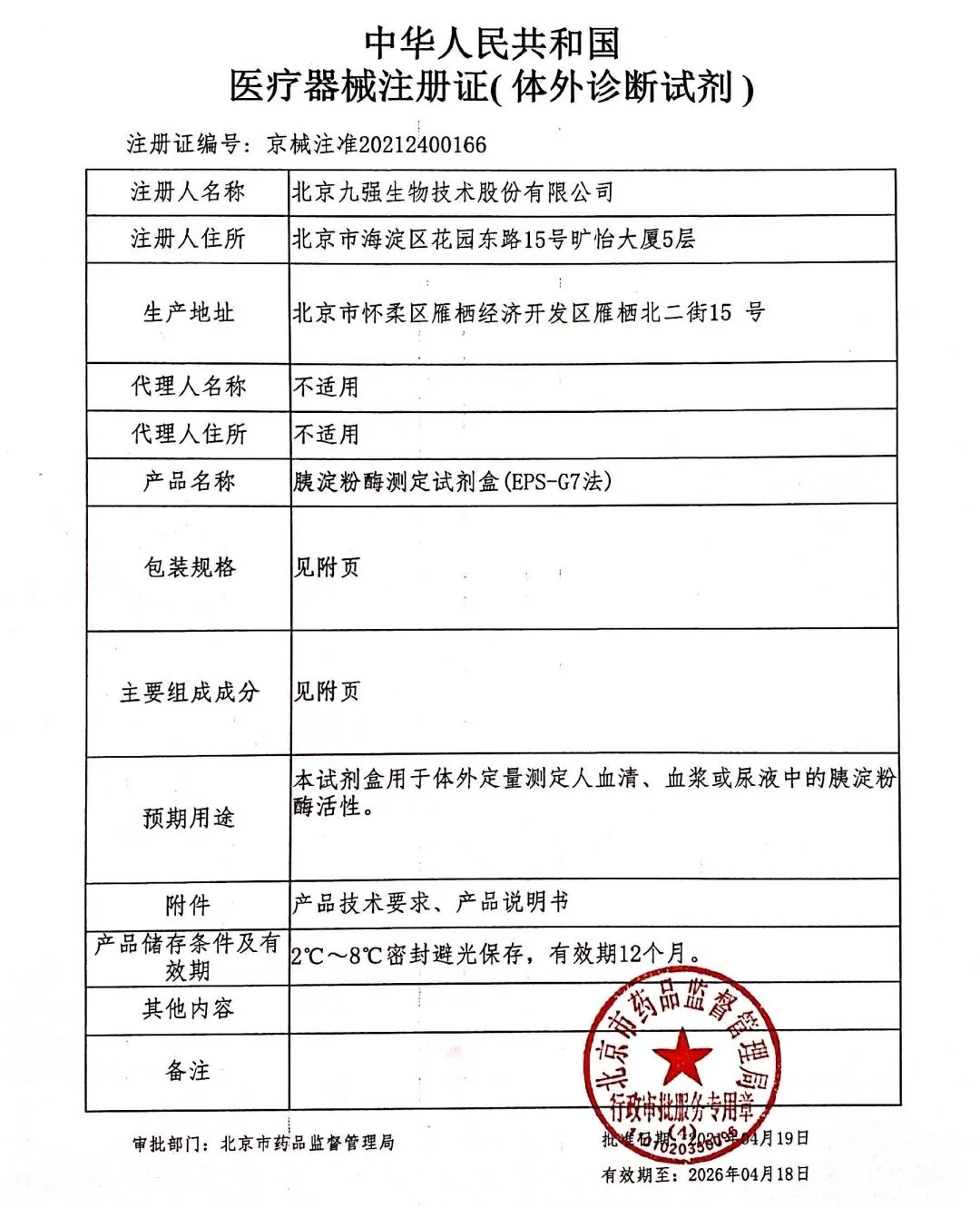 B体育(中国)一站式服务平台顺利取得北京市药品监督管理局颁发的三项产品的《医疗器械注册证》:谷胱甘肽还原酶(液体)测定试剂盒(谷胱甘肽底物法)、脂蛋白相关磷脂酶A2测定试剂盒(Lp-PLA2酶法)和胰淀粉酶测定试剂盒(EPS-G7法)。
