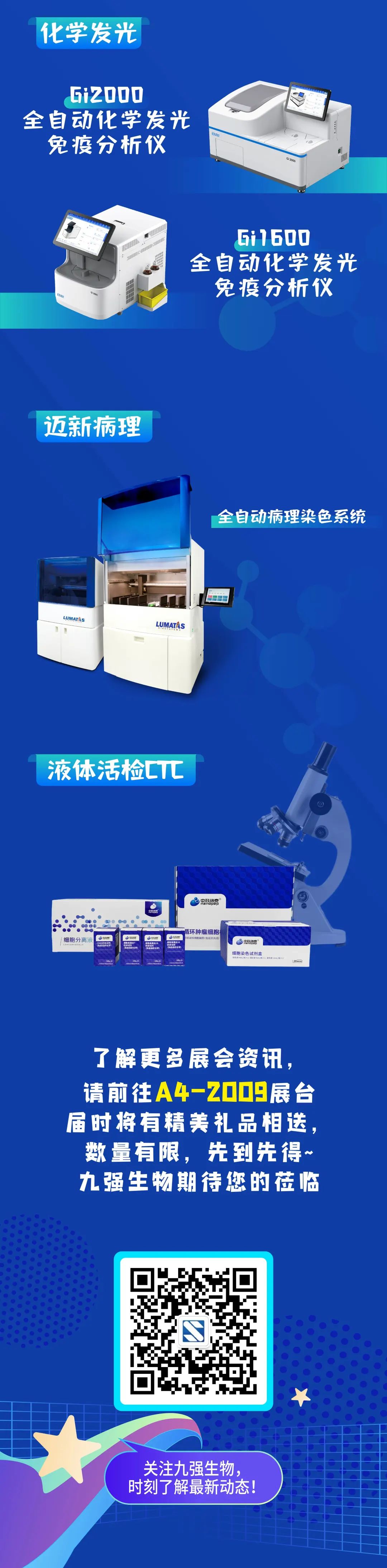 B体育(中国)一站式服务平台将携六大产品线——“生化、血凝、血型、化学发光、病理、液体活检CTC”亮相本次展会,诚邀各位莅临参观指导。