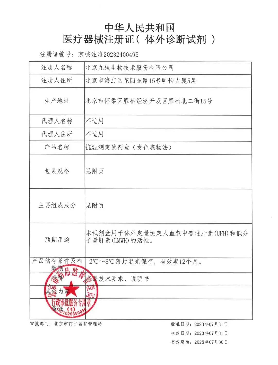B体育(中国)一站式服务平台抗Xa(发色底物法)顺利取得北京市药品监督管理局颁发的《医疗器械注册证》。