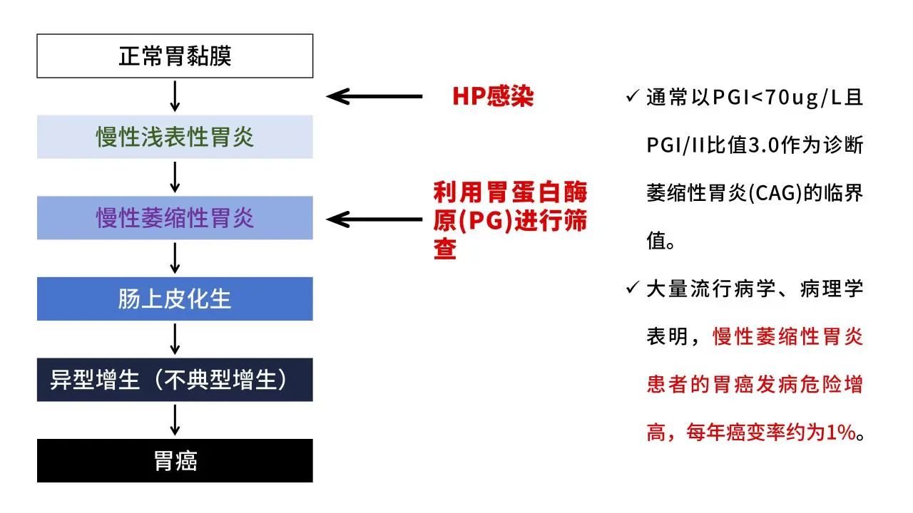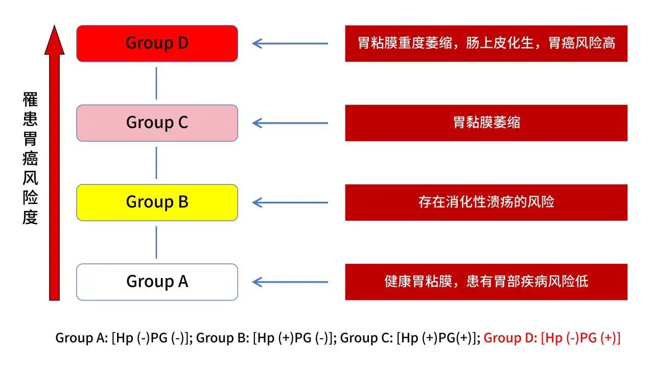 根据PG检测结果评估胃粘膜炎性状态和损伤程度,排除或确认胃癌高风险。