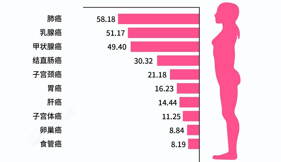 根据《国家癌症中心杂志》**统计数据(2022年发布),自2000年至2016年,我国女性甲状腺癌的发病率增长了20倍。与2012年全国癌症流行病学统计数据相比,女性甲状腺癌的发病率从第七位上升至第三位,已经成为中国女性第三大常见癌症。