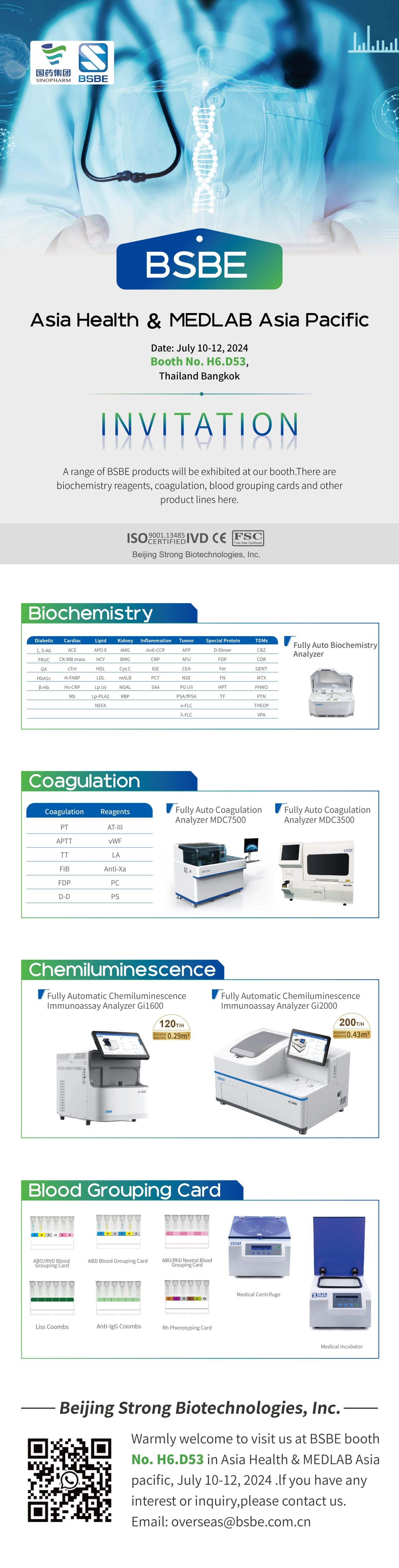 B体育(中国)一站式服务平台携旗下 生化检测系统、血凝检测系统、化学发光检测系统、血型检测系统 等产品参会,期待能与全球各地的同仁进行交流探讨。