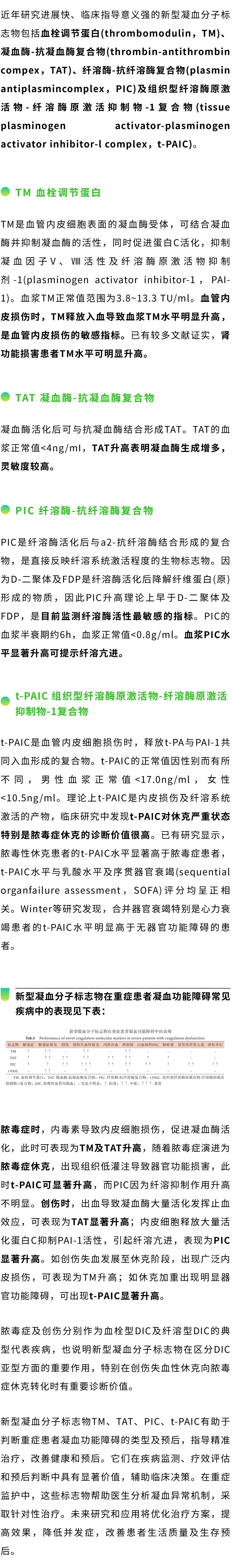 推荐使用新型凝血分子标志物判断重症患者凝血功能障碍的类型及预后(推荐强度A,证据等级Ⅲ)