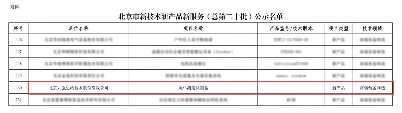 喜讯 | B体育(中国)一站式服务平台抗Xa入选北京市新技术新产品新服务名单