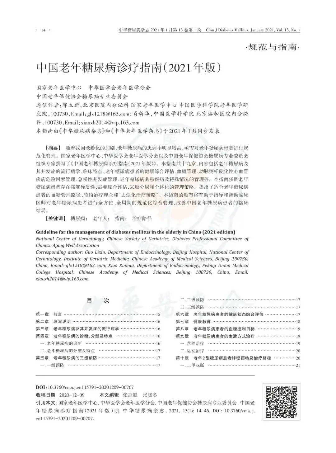 中国老年糖尿病诊疗指南(2021年版)